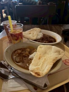 1枚目は定番のスパイシースモークチキンレッグ、並んでいる人もとても多く、買うのに時間がかかりましたが食べ応え抜群の一品です!